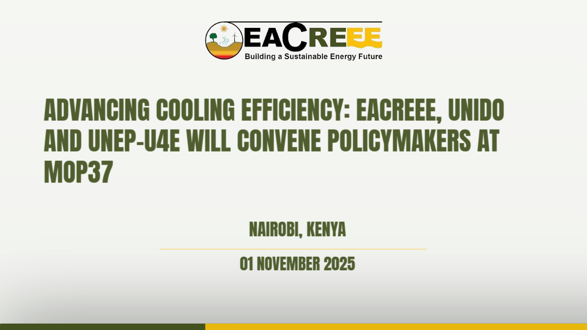 EACREEE is pleased to announce two key events in Nairobi, Kenya, to accelerate the adoption and implementation of energy-efficient and climate-friendly cooling appliances in the East African Community region. The event is organised in collaboration with the United Nations Environment Programme’s United for Efficiency (UNEP-U4E) and the United Nations Industrial Development Organisation (UNIDO) alongside the Thirty-Seventh Meeting of the Parties (MOP37) to the Montreal Protocol. It will bring together policymakers, regulators, technical experts and development partners to advocate harmonised Minimum Energy Performance Standards (MEPS) for cooling appliances in the region.